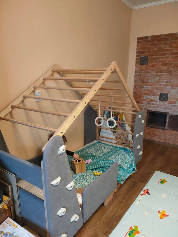 Maluch może codziennie wspinać się po drabince lub siatce wspinaczkowej, huśtać się na kółkach gimnastycznych, ćwicząc siłę, koordynację i równowagę, a jednocześnie spokojniej zasypiać w swoim własnym „domku”.